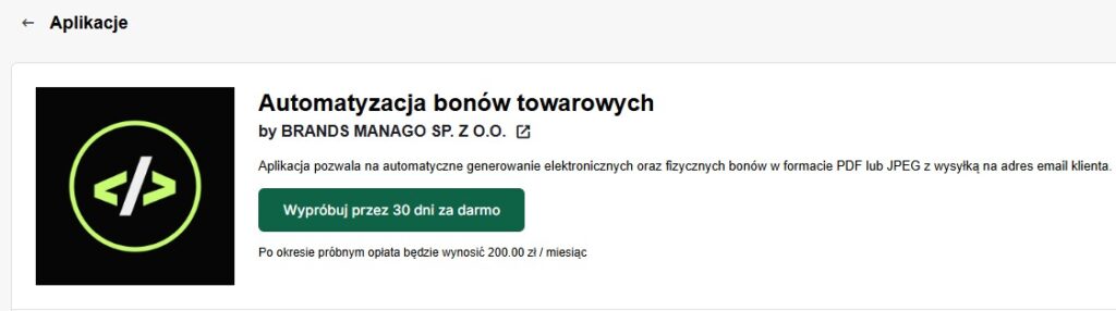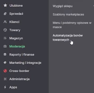Do aplikacji można też wejść przez Moderacja → Automatyzacja bonów towarowych – ta opcja pojawi się automatycznie po instalacji.