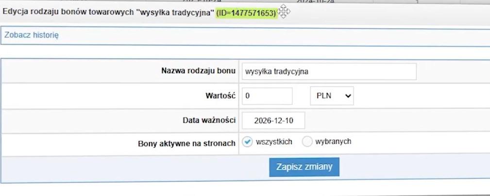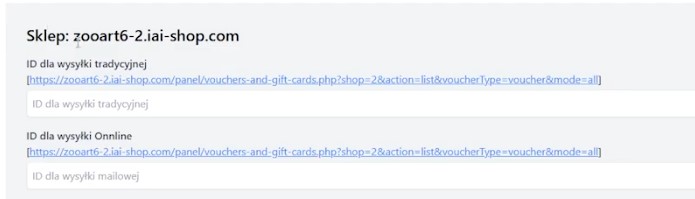 Jeśli chcemy wysyłać bony również online, tworzymy drugi rodzaj kampanii, na przykład „Wysyłka online" i zapisujemy zmiany. Tam również pojawi się osobny identyfikator.