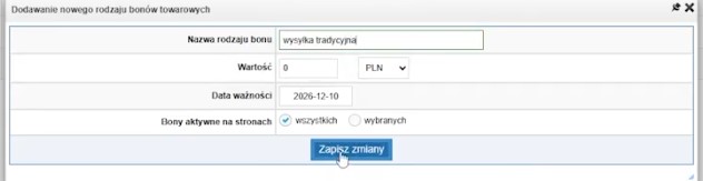Po kliknięciu wybieramy opcję widoczną u góry „Dodaj nowy rodzaj bonów towarowych".