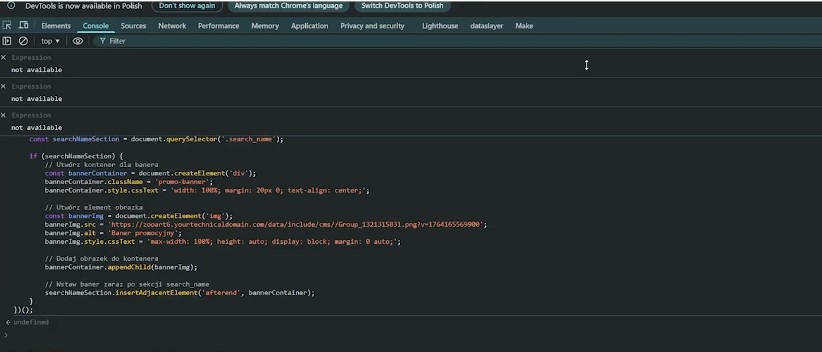 Ale uwaga – po odświeżeniu strony baner zniknie. Dlatego przechodzimy do Moderacja → Wygląd sklepu → Dodatki HTML i JavaScript.