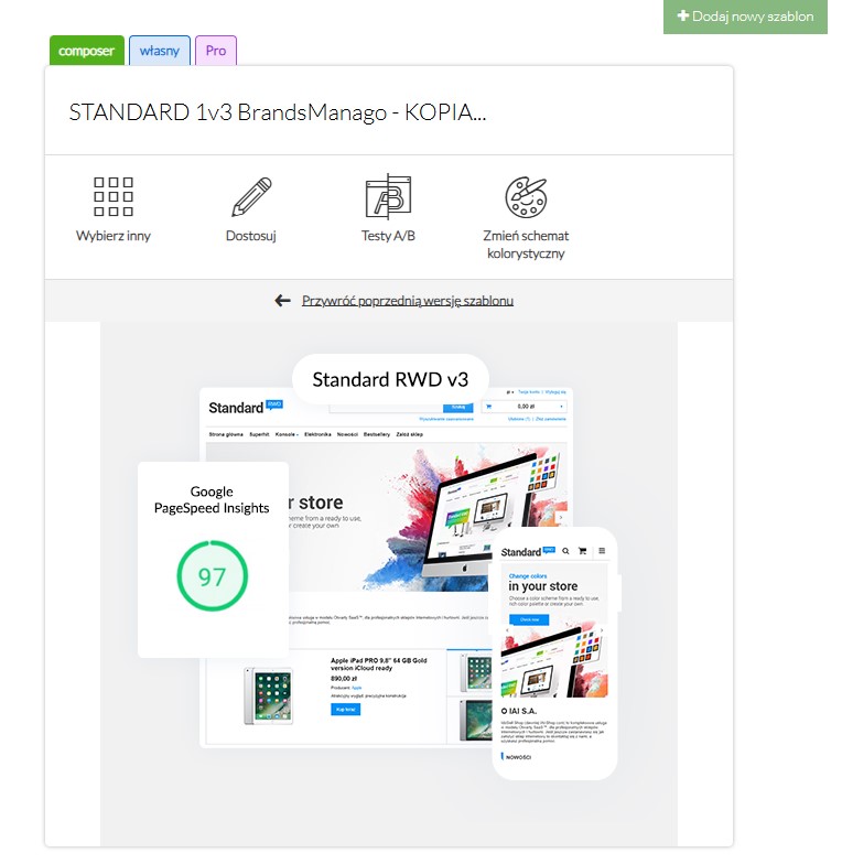 Następnie wchodzimy w "Szczegóły" wybranego szablonu.