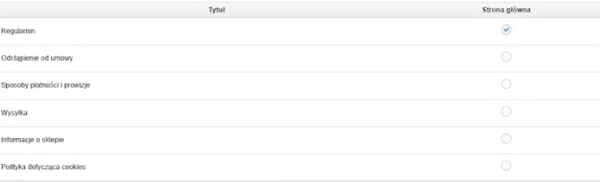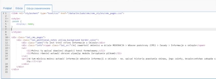 Załóżmy, że chcemy ukryć pasek informacyjny na jakiejś podstronie CMS (czyli stronie informacyjnej), na przykład „Informacje o sklepie".