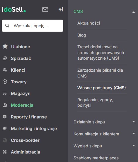 W związku z tym przechodzimy do Moderacja → CMS → Własne podstrony CMS.