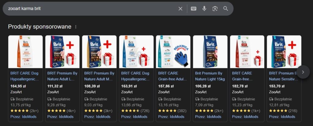 Google Ads reklamy produktowe (Google Shopping) – Te reklamy wyświetlają zdjęcia produktów, ceny i sklep bezpośrednio w wynikach wyszukiwania Google oraz w Google Shopping. Jest to jedna z najskuteczniejszych form reklamy dla sklepów internetowych, ponieważ pozwala użytkownikom na natychmiastowe zapoznanie się z produktem i jego ceną.